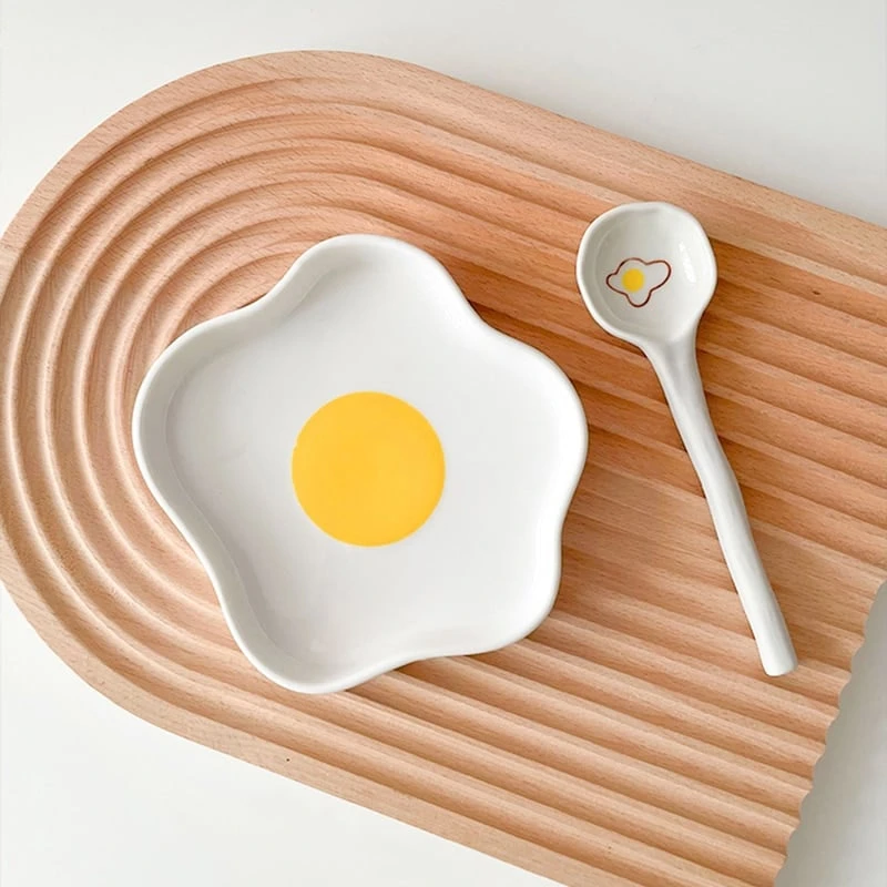 Kawaii Breakfast Egg Yolk Ceramic Plate Set