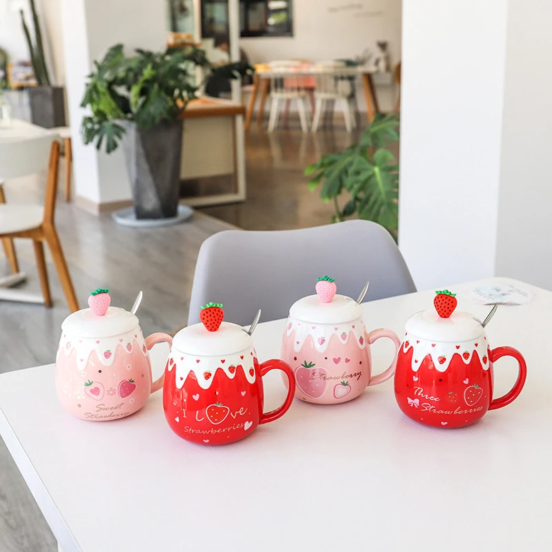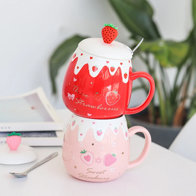 Kawaii Fruit Strawberry Avocado Ceramic Cups – Limited Edition