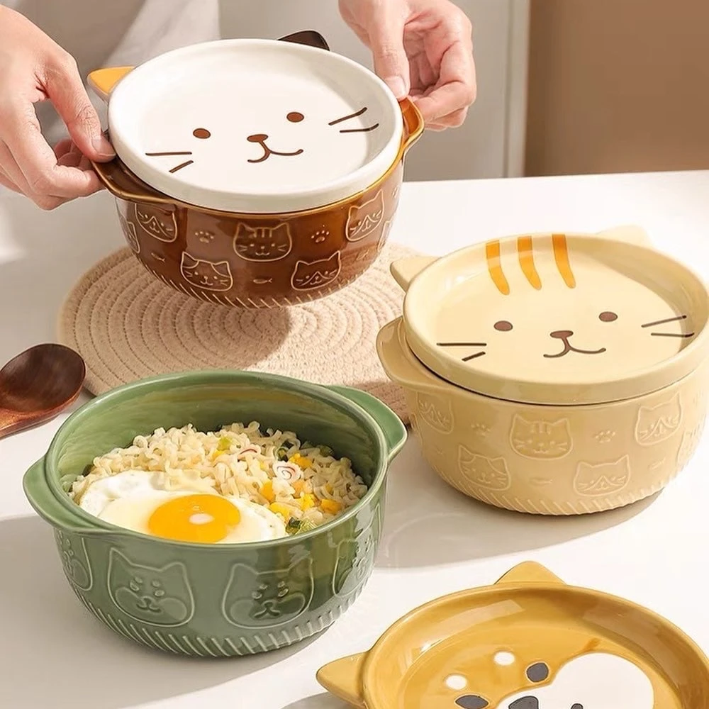 The Kawaii Japanese Style Ceramic Cat Bowl is made of ceramic, which makes it extremely durable and resistant to hot and cold temperatures. This cat ceramic bowl can hold a variety of foods, including rice, noodles, and cereal.