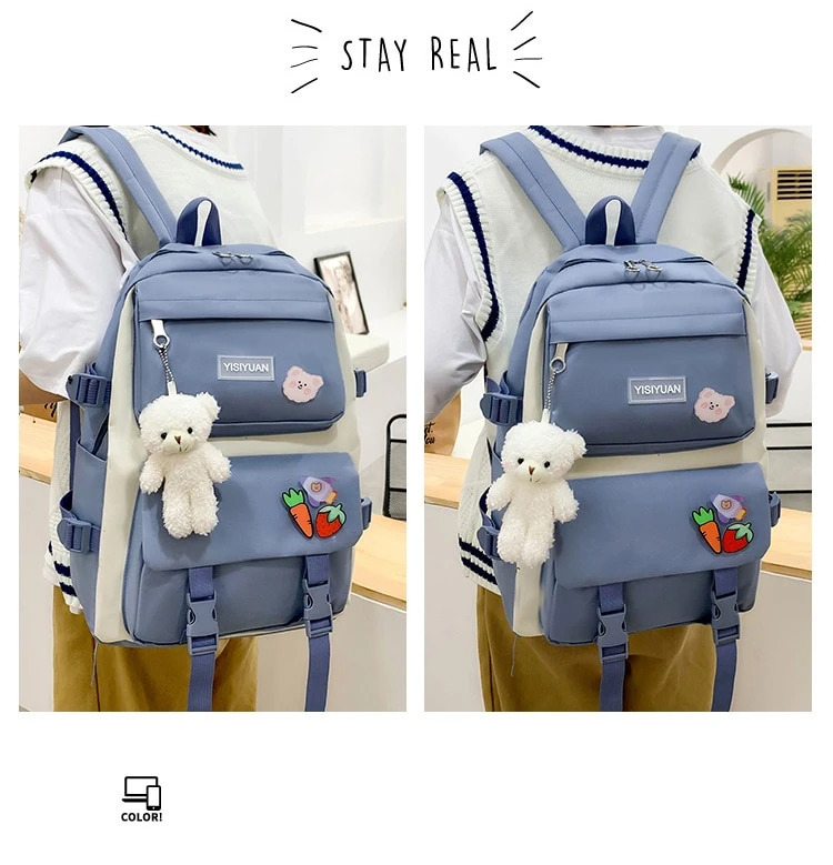Kawaii Korea Canvas Harajuku Backpack Set (5pcs)
