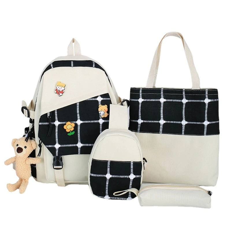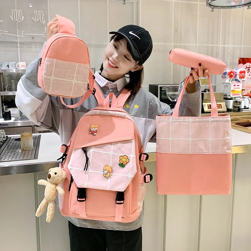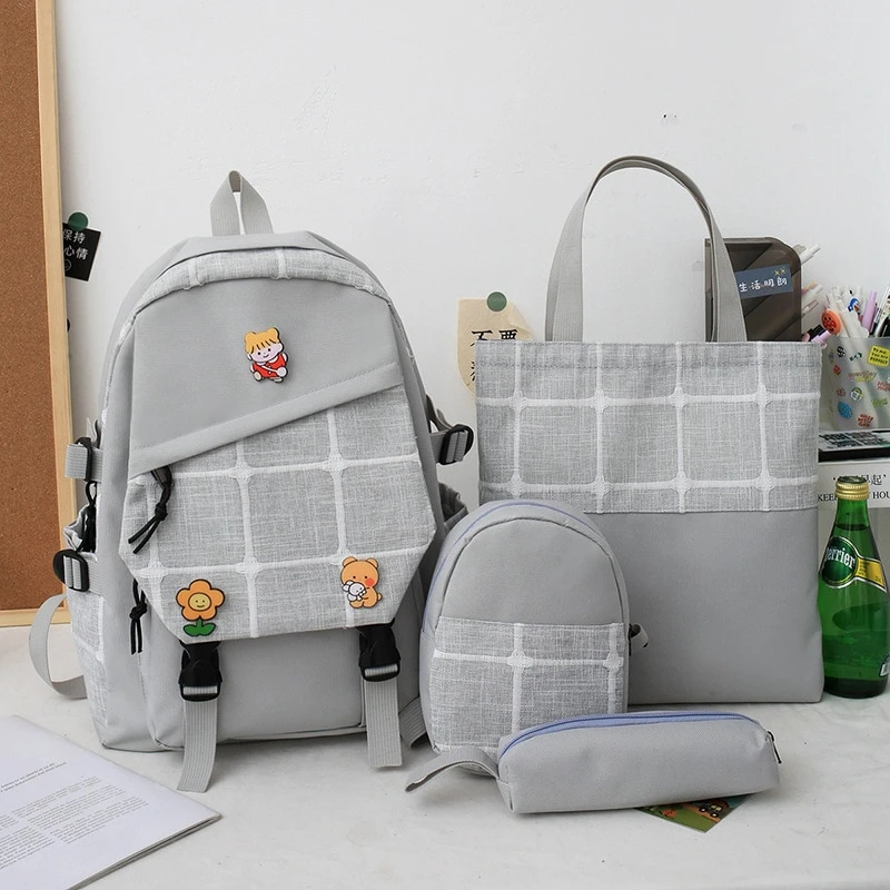 Kawaii Korea Style Harajuku Plaid Grid Backpack Set