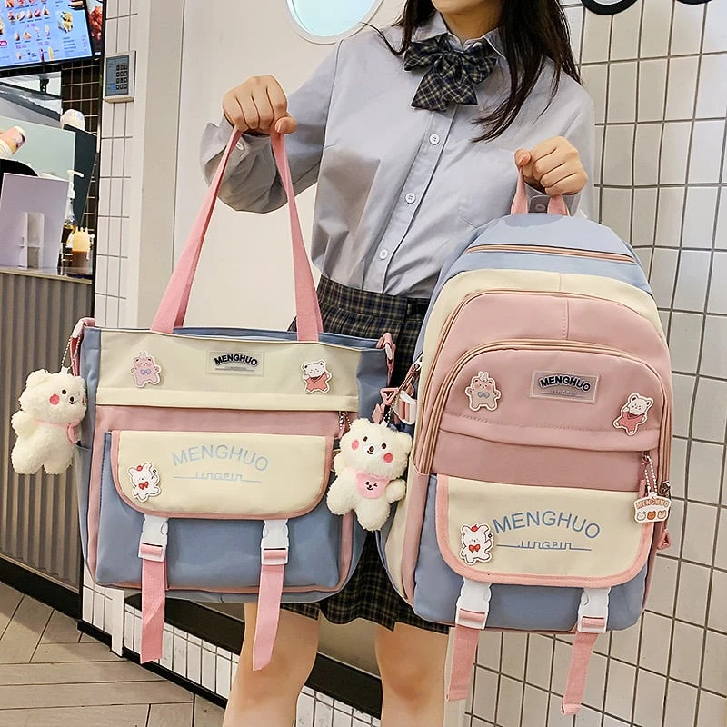 Kawaii Large Capacity College Fashion Backpack Set (2pcs)